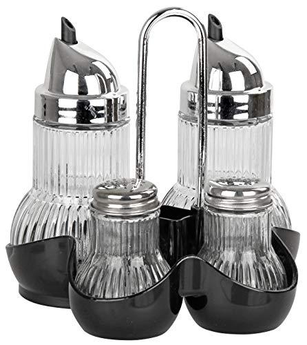 FACKELMANN Menage RUBIN Es/olja/S+P ät- och oljeutgjutning, salt- och pepparströare, tandhålsbehållare, kropp: glas, silver transparent/svart, ca 15 x 14 x 13,5 cm, 5 enheter