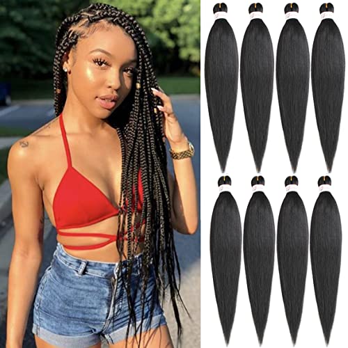Leeven Försträckt hårförlängningar av kanekalonfiber för crochet-flätning, i 8-pack, svart ombre med yaki-textur, för varmvattenläggning, för Coi Leray-flätor, 76 cm, #1B