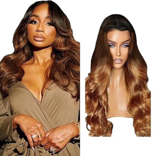 Evaxilc T1B430 Black Root Ombre Brown Human Hair Wig Glueless Straight Peruker för människohår 150% Density 5x5 HD Lace Front Wig Human Hair Brazilian Remy Hair 18 Inch