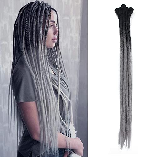 Dsoar 24" Dreadlock 10-strängade syntetiska Dreads-förlängningar handgjorda/paket Dreads Hook Hair (Ombre svart till grå)