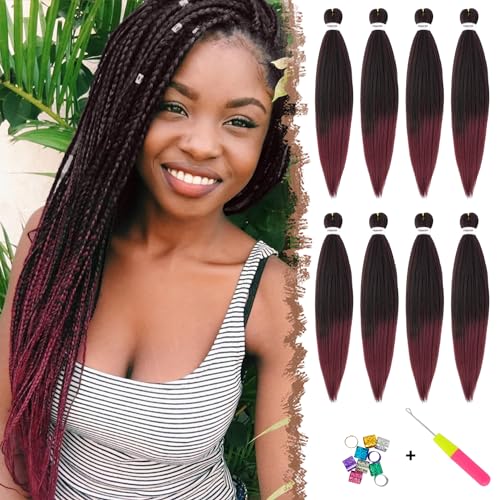 FESHFEN Försträckt extensionshår för flätor 66 cm 8 stycken Försträckt flätningshår ombre svart hårförlängning Yaki-struktur Syntetisk EZ Flätning Hårförlängningar, Kolsvart till Bourgogne