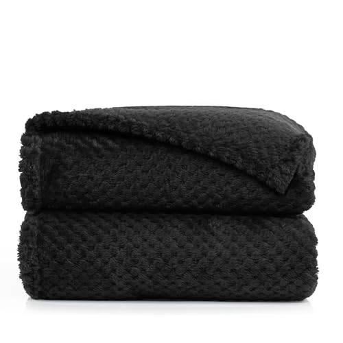 Good Nite fleecefilt fluffiga överkastfiltar 150 x 200 cm flanell varmt mjukt överkast för soffa överkast (svart, dubbel)