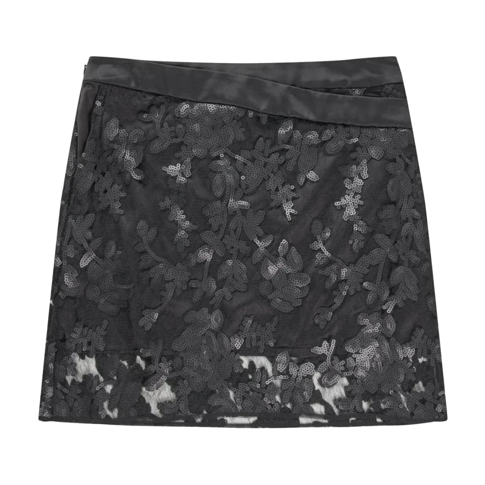 Munthe, Kjolar , Dam, M, Paljettkjol med spetskant