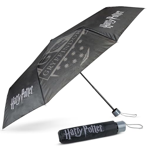 BONNYCO Vindtätt Harry Potter Paraply. Svart Hopfällbart Resparaply med Robust Konstruktion. Smidigt Mini-Paraply för Väska och Resor. Snygg och Praktisk Gåva för Alla Åldrar