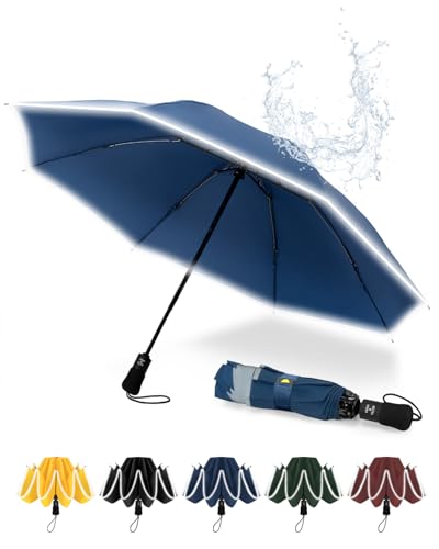Chakipee paraply vindtätt starka kompakta automatiska paraplyer – svart paraply för män och kvinnor, bärbart vikbart paraply för resor med reflekterande ränder – passar bil och ryggsäck för vind och