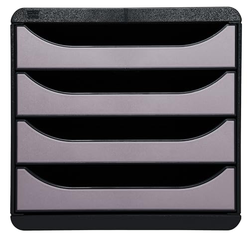 Exacompta - Ref 310014D - BIG-BOX - 4-facks piedestal för A4+ dokument - Utvändiga mått: Djup 34,70 x Bredd 27,80 x Höjd 26,70 cm - Färg ljusgrå/svart