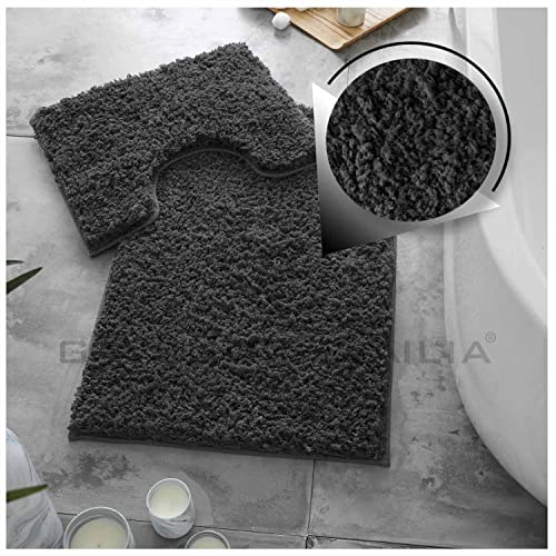 Gaveno Cavailia Lyxig supermjuk 2 delar noll vridning badmatta piedestal set halkfri, extra absorberande 100 % polyester badrum toalettmatta, normal (50 x 80, 50 x 40 cm), svart