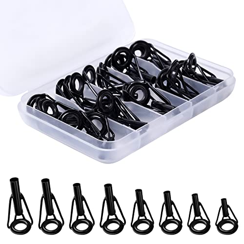 Lechengjia 40 st reparationssats för fiskespö, 1,6–3,2 mm rostfritt stål, spö, ersättning med plastlåda, fiskespö, keramiska styrringar för sötvattensfiske älskare (svart, 10 storlekar)