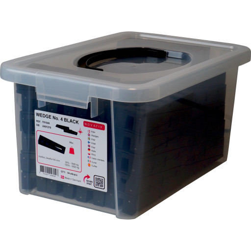 Novafix kil 4 svart, H24 mm x B45 x L150 mm, 84 st i plastlåda