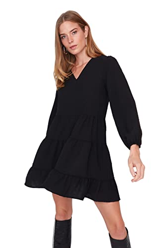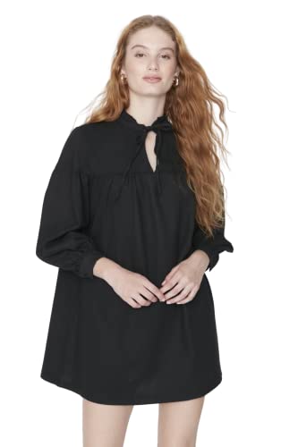 Trendyol Dam rak mini långa ärmar ledig/avslappnad avslappnad avslappnad klänning, svart, 34