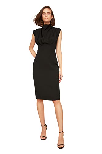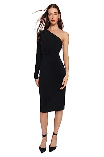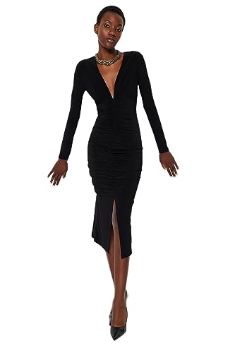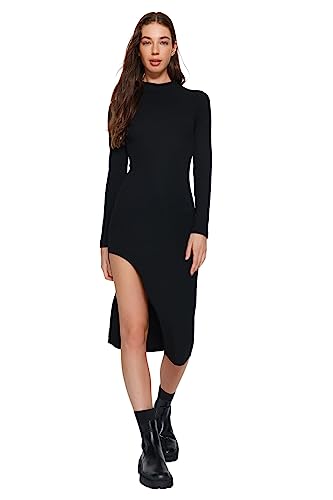 TRENDYOL Rak midi-ärmar dag natt smal klänning för kvinnor, svart, 40