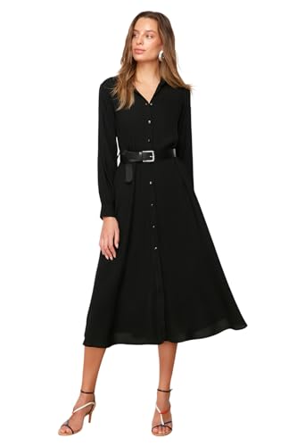 Trendyol Dam rak midi långa ärmar ledig/ledig vanlig klänning, svart, 40