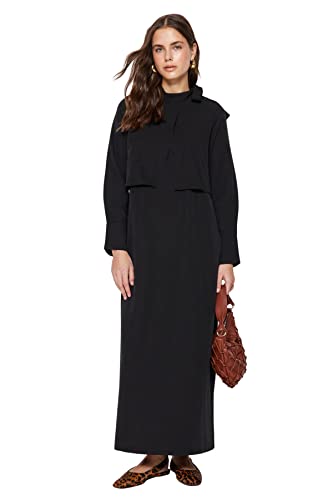 Trendyol damer rak maxi långa ärmar ledig/avslappnad vanlig hijab klänning, svart, 34