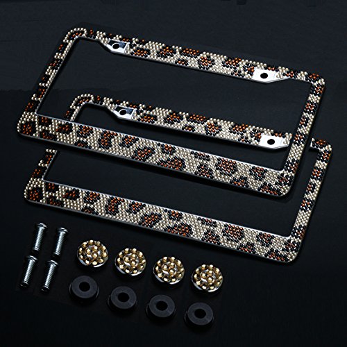 2 st auto leopard registreringsskylt, Firwood hantverk bling strass diamant, aluminium krom kropp inklusive 4 x kristalllock + 4 x skruvfästen