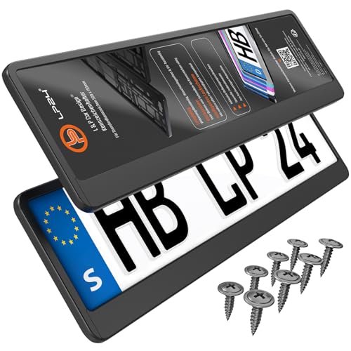 L & P 2x Nummerplåtshållare - hållbar & säker - 8 skruvar - svart - 520x110 mm Registreringsskylthållare för svenska & EU - Nummerskyltshållare passar alla bilar - universell fäste registreringsskylt