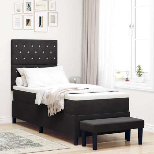 vidaXL Boxfjädersäng med madrass & bänk Svart 80x200 cm Sammet