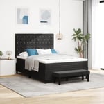 vidaXL Resårmadrass med Madrass & Bänk svart 140x200 cm sammet
