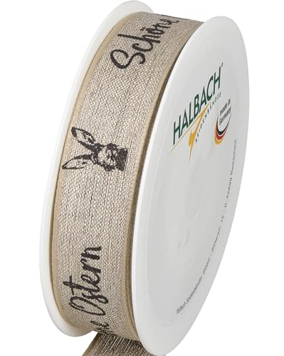 Halbach sidenband linneband påsk | 25 mm x 15 m | dekorband för påskbokstäver "vackra påsk" | band linne för påskpresenter | färg: svart