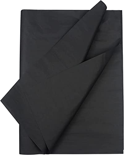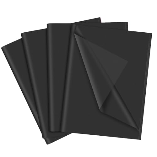 Glick fyra ark med svart silkespapper, varje ark 750 mm x 500 mm silkespapper svart, svart papper för presentförpackning, födelsedag svart silkespapper, halloween (TP12)