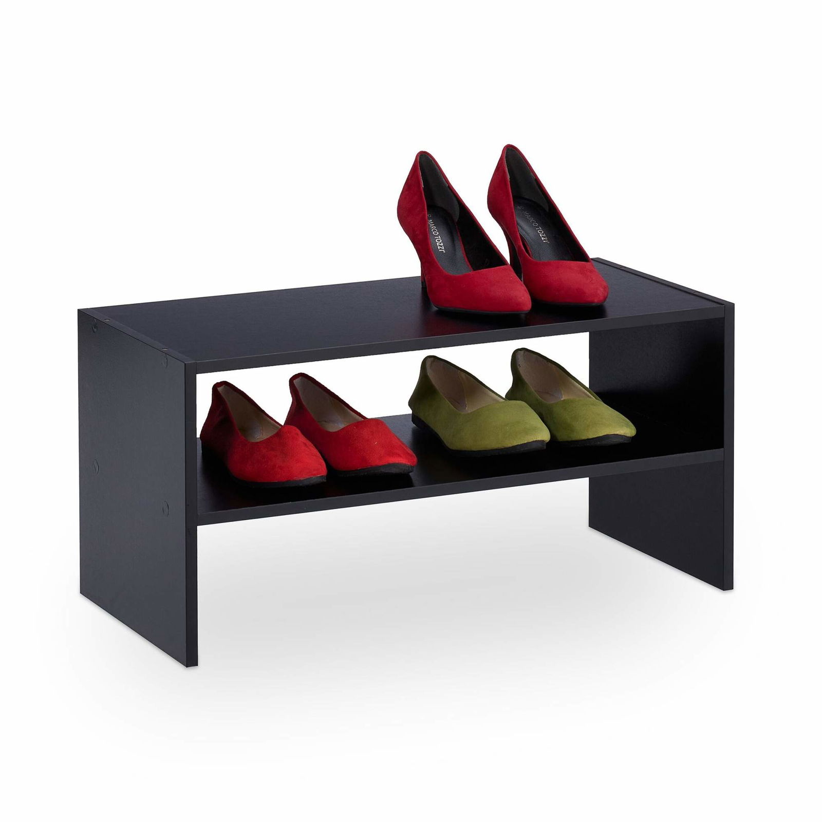 Svart skohylla med 2 hyllplan