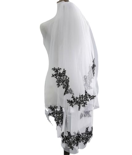 HWBZSZY Dubbelskikt brudslöjor bröllop mjuk tyll med kam, katedral svart spets blomkant slöja kvinnor bröllop huvudbonad tillbehör för fotostudio och fest, vit, 80 cm/100 cm