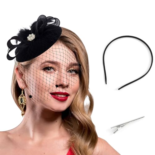 BABEYOND 1920-tals klaff fascinator nät slöja pannband brud bröllop te party fascinator slöja för kvinnor, svart, 1 st (paket med 1)