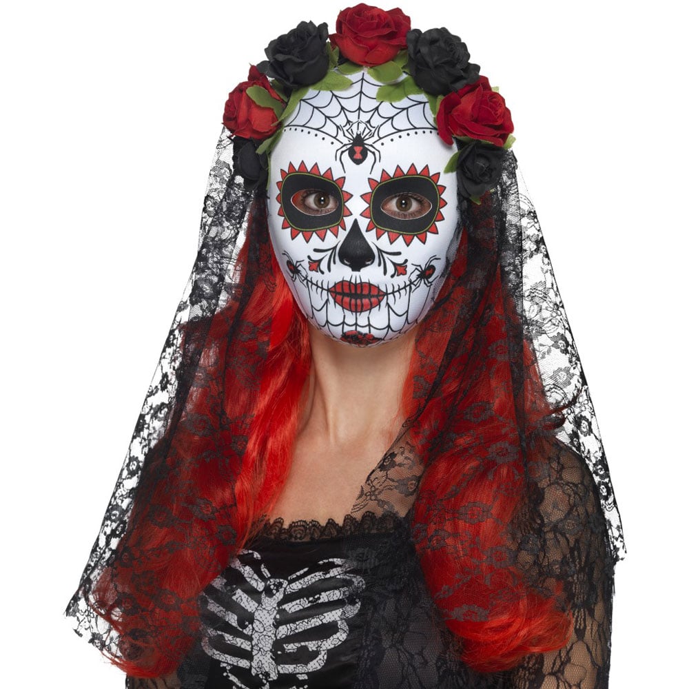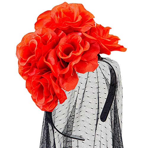 W WIDMANN MILANO Party Fashion 09778 – pannband slöja med röda rosor, 'Dia de los muertos, död, hatt, huvudbonad, tillbehör, temafest, karneval