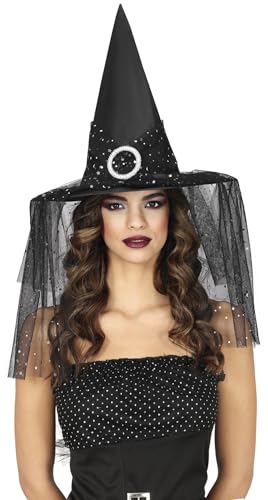 FIESTAS GUIRCA | Häxhatt med slöja och stjärnor - Häxkostym tillbehör för Halloween och maskeradfester - perfekt för vuxen kvinna - svart