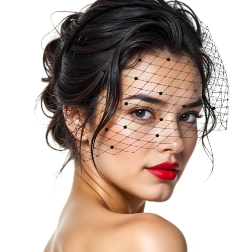 Yolev Brud bröllop slöja vintage fascinator nät spets pannband tebjudning huvudbonader med slöja cocktail te party huvudbonad för flickor och kvinnor (svart)