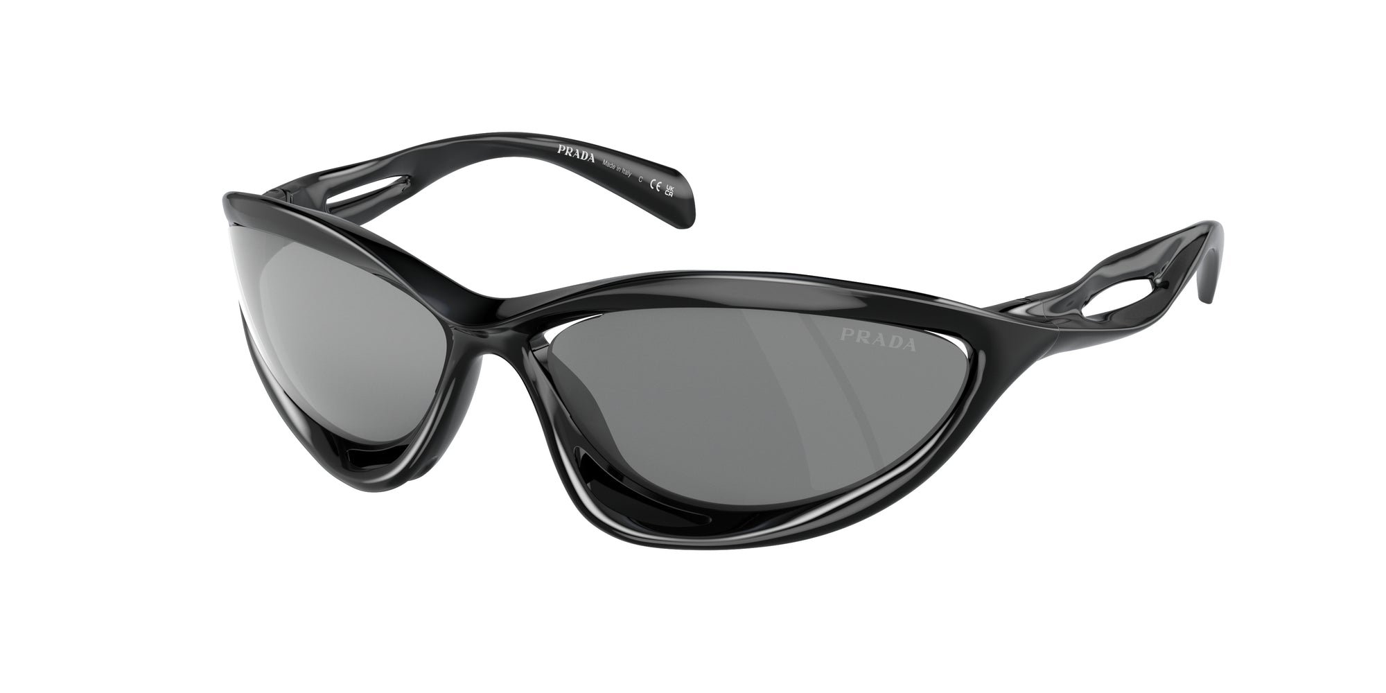 Prada Man Prada PR A26S 1AB60G Solglasögon Injicerad Svart Grå Cat Eye Speglad Spegel