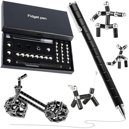 Magnetisk Kulspetspenna, Multifunktionell Magnetisk Penna Stresslindring Kulspetspenna Metallpenna Magnet Penna Svala Pennor Prylar, Gåva för Unga Män Kvinnor Barn (Svart)