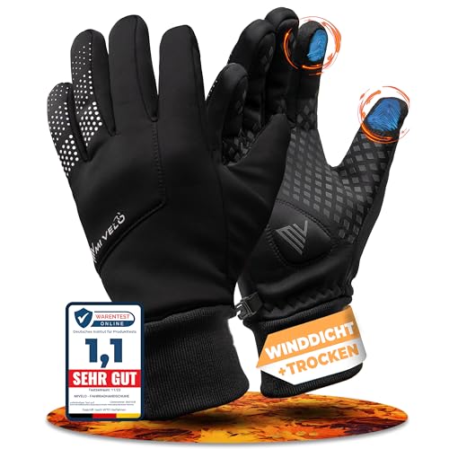 MIVELO Övergångshandskar för medelstora till svala temperaturer I cykelhandskar män och kvinnor – vattenavvisande och med Ergopad I pekskärm I vindtäta handskar (svart, XL)