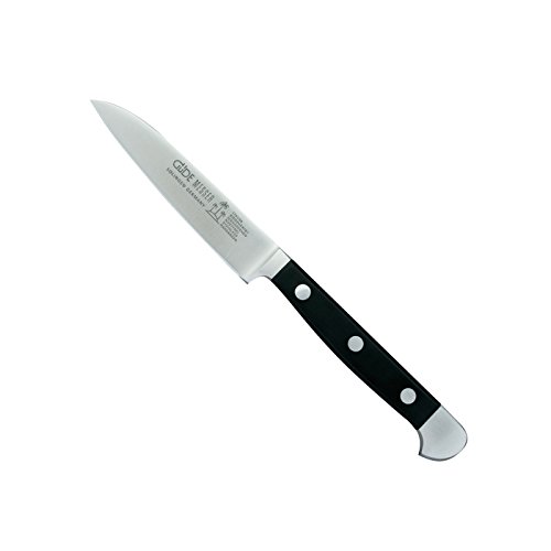 GÜDE Solingen - Stekkniv med tand smidd, 12 cm, POM svart, ALPHA - double bolster, Handgjord Tyskland