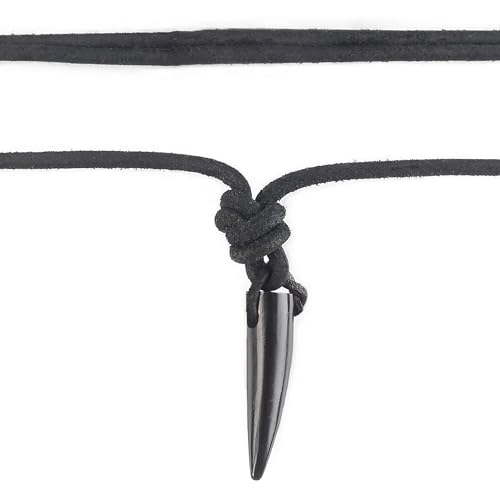 DonDon herr läderrem läder halsband 50 cm med hänge i form av en svart tand i rostfritt stål