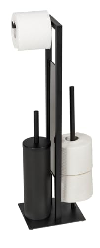 WENKO Toalettpappershållare 2-i-1 svart, fristående hållare för pappersrullar, med integrerat toalettpapper, ersättningsrullehållare upp till 4 toalettrullar, lackerat stål i loftstil, 21 x 55 x 17 cm