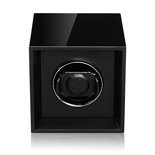 MODALO Automatisk enkel klocka upprullningsimponering, med massiv trälåda och pianolack – tysk utveckling och tillverkning, svart