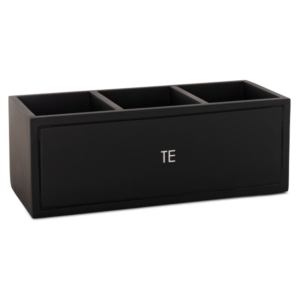 Bredemeijer Stor svart trälåda 35,5 x 20,8 cm – tebox utan fönster med 6 burkar för löst te och mätskedar, svart