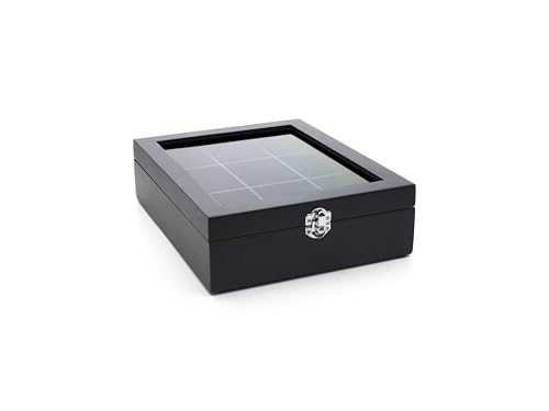Bredemeijer Svart tepåslåda med 9 fack och visningsfönster – trälåda för optimal förvaring av tepåsar