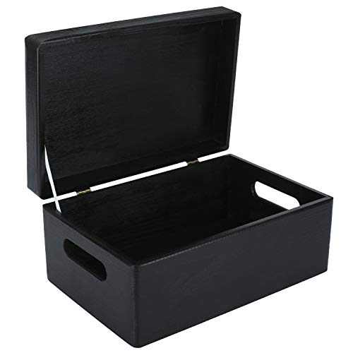 Creative Deco Svart Stor Trälåda Förvaring Minnessak Trä | 30 x 20 x 14 cm (+/- 1cm) | med Handtag | med Lock | Julklappslåda Julen | Perfekt för Dokument, Värdesaker, Leksaker och Verktyg