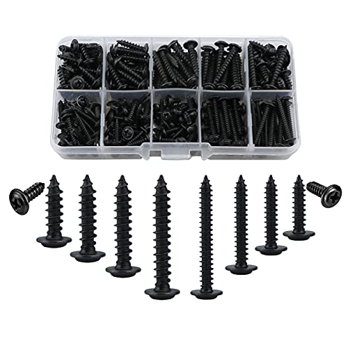 400 st självgängande skruvar, M3 M3,5 M4 M5 svarta skruvar, träskruv, korshuvud självborrande skruv för metall plast