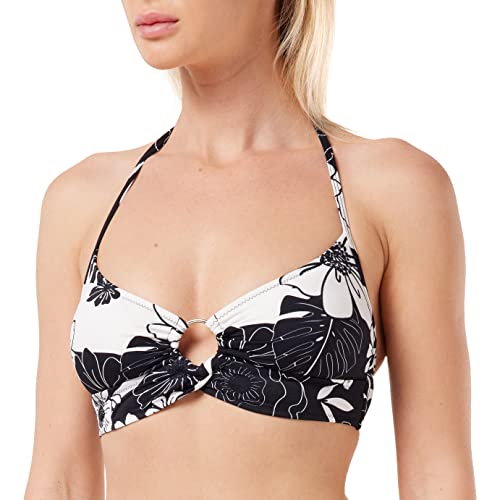 Koton Dam tjock strappy blommig näsduk triangel bikini topp badkläder, Svart (999), 36 SE