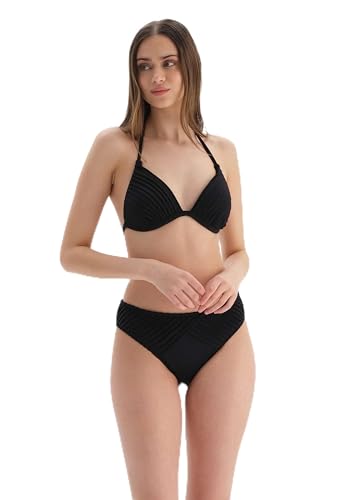 Koton Dam triangel metalltillbehör detaljerad vadderad bikini topp, Svart (999), 36 SE