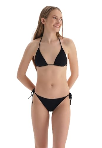 ForBeautyShe Dam sexig tanga botten tvådelad bikini dubbla axelremmar söt baddräkt triangel bad, svart, M