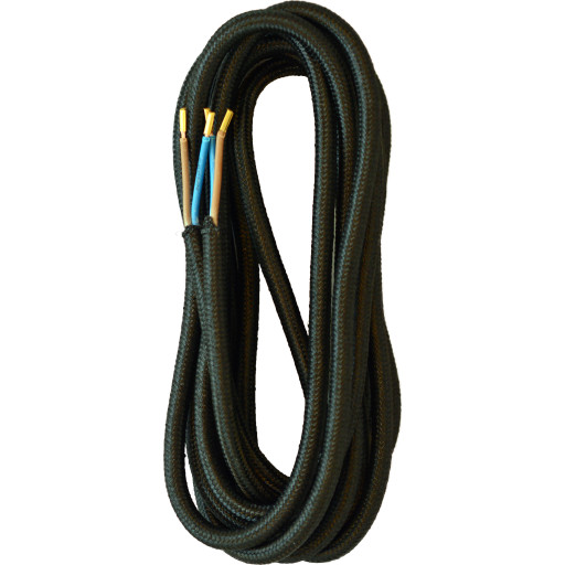 Textilkabel för lampa, tygkabel 3-ledare (3 x 0,75 mm²), svart – 10 meter