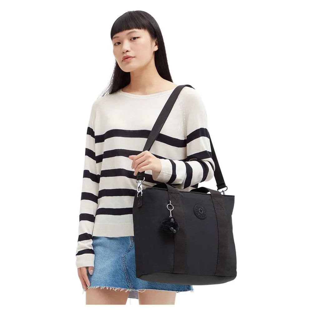 PANASIAM Axelväska för kvinnor och män I stor tygpåse i 2 storlekar – behagligt lätt & härligt robust I med dragkedja & extra innerficka I axelväska, - svart - Medium