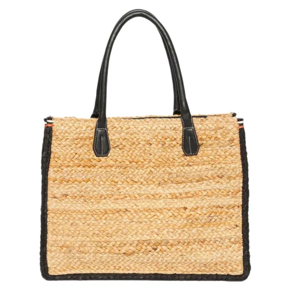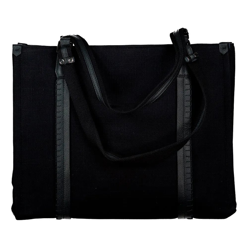 COTTARA® Jutepåse svart – högkvalitativ tygväska med dragkedja, främre fack och bred botten – shoppingväska med långt handtag – perfekt som tygpåse, bärväska, jutväska, shoppingväska
