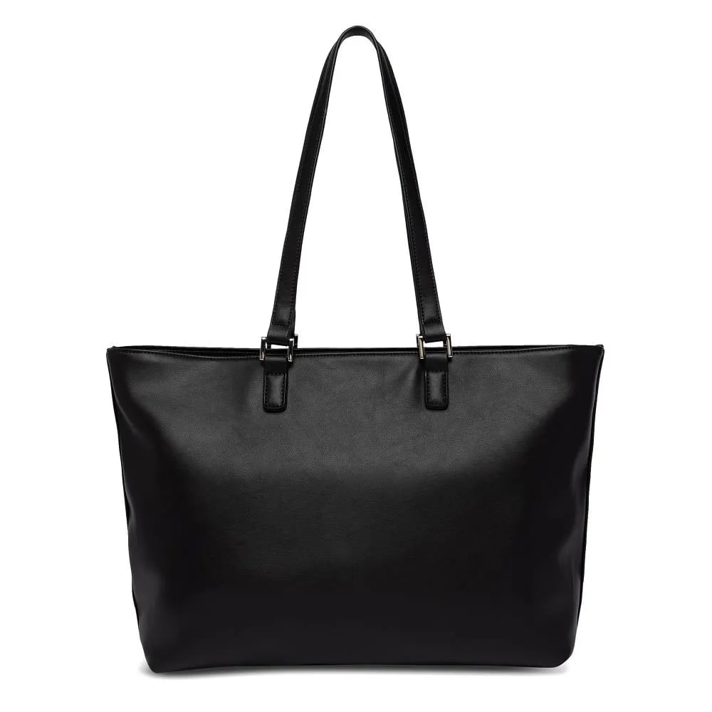 Pocadri Handväska för damer, chic, av veganskt läder, tygväska, tygpåse, snygg, avslappnad, trendig, stor, mjuk axelväska, Svart