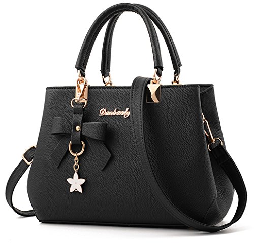Dreubea Damhandväska tygväska axelväska läder crossbody väska svart storlek: L