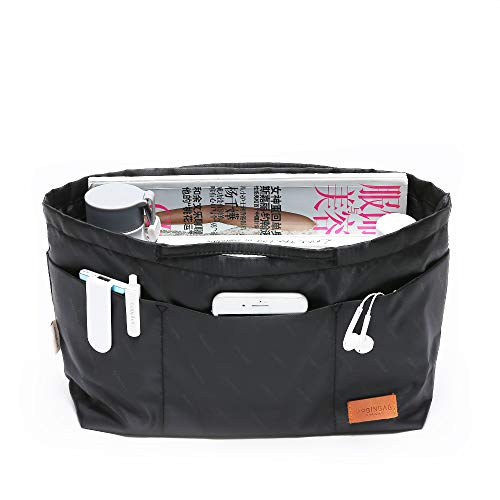 iN. Handväska organisatör insats med dragkedja nylontyg för kvinnor handväskor och tygväska, svart, Medium: 15,7 tum (topp)/31 cm (nedan) L × 12,7 cm B × 21 cm H