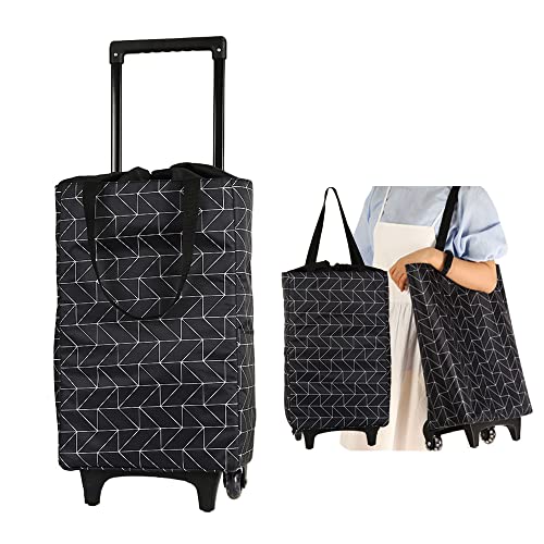 Aieino 23 L shoppingväska på hjul – vikbar shoppingvagn med värmeisoleringsfoder, teleskophandtag, återanvändbar, hopfällbar livsmedelsvagn, tygväska, svart